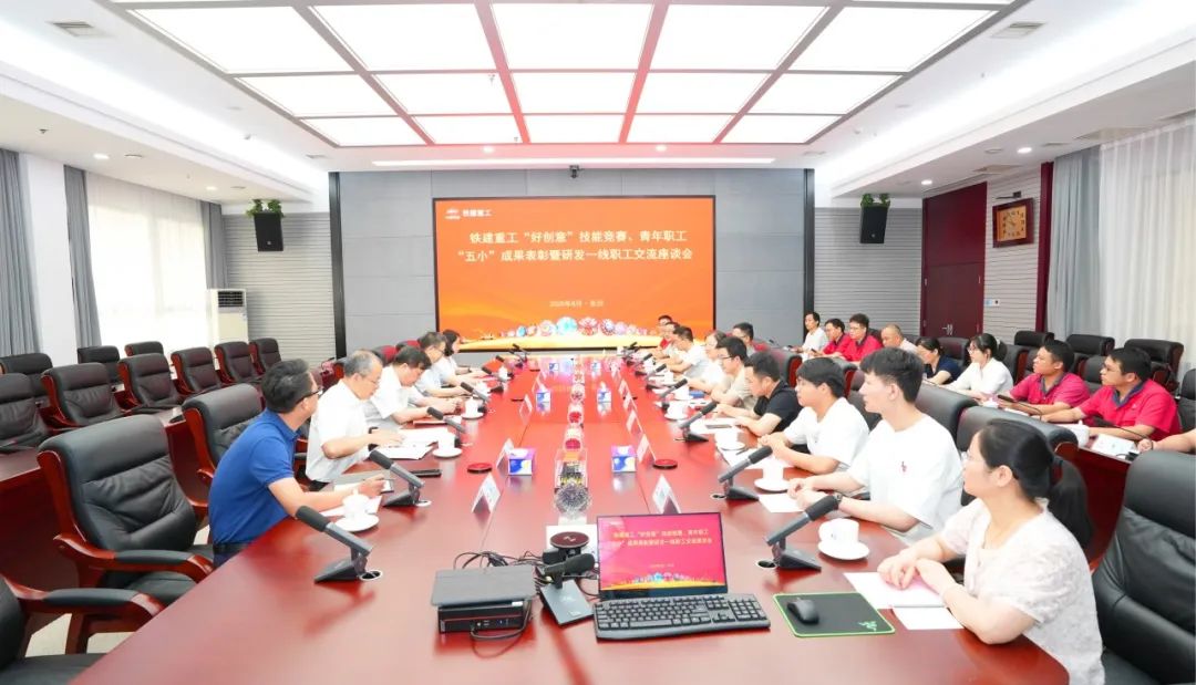 8月6日,鐵建重工召開“好創意”技能競賽、青年職工“五小”成果表彰暨研發一線職工交流座談會。鐵建重工黨委書記、董事長趙暉,黨委常委、副總經理、工會主席譚光勇出席,并為獲獎職工代表現場頒發榮譽證書及獎品。